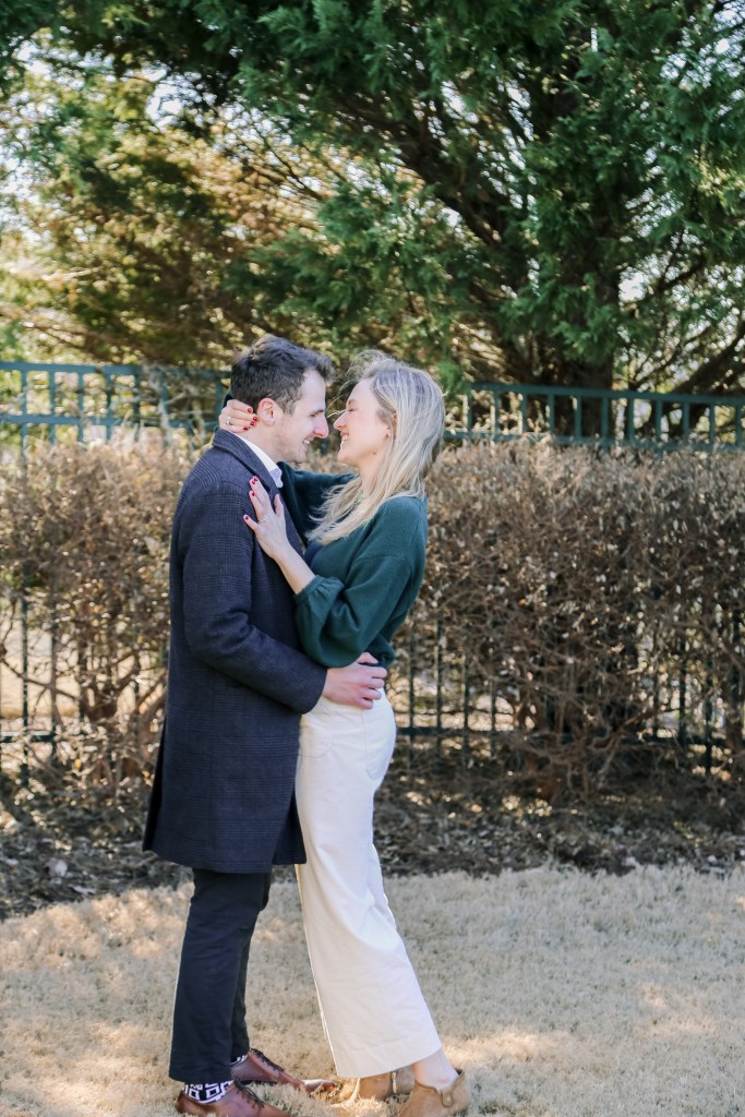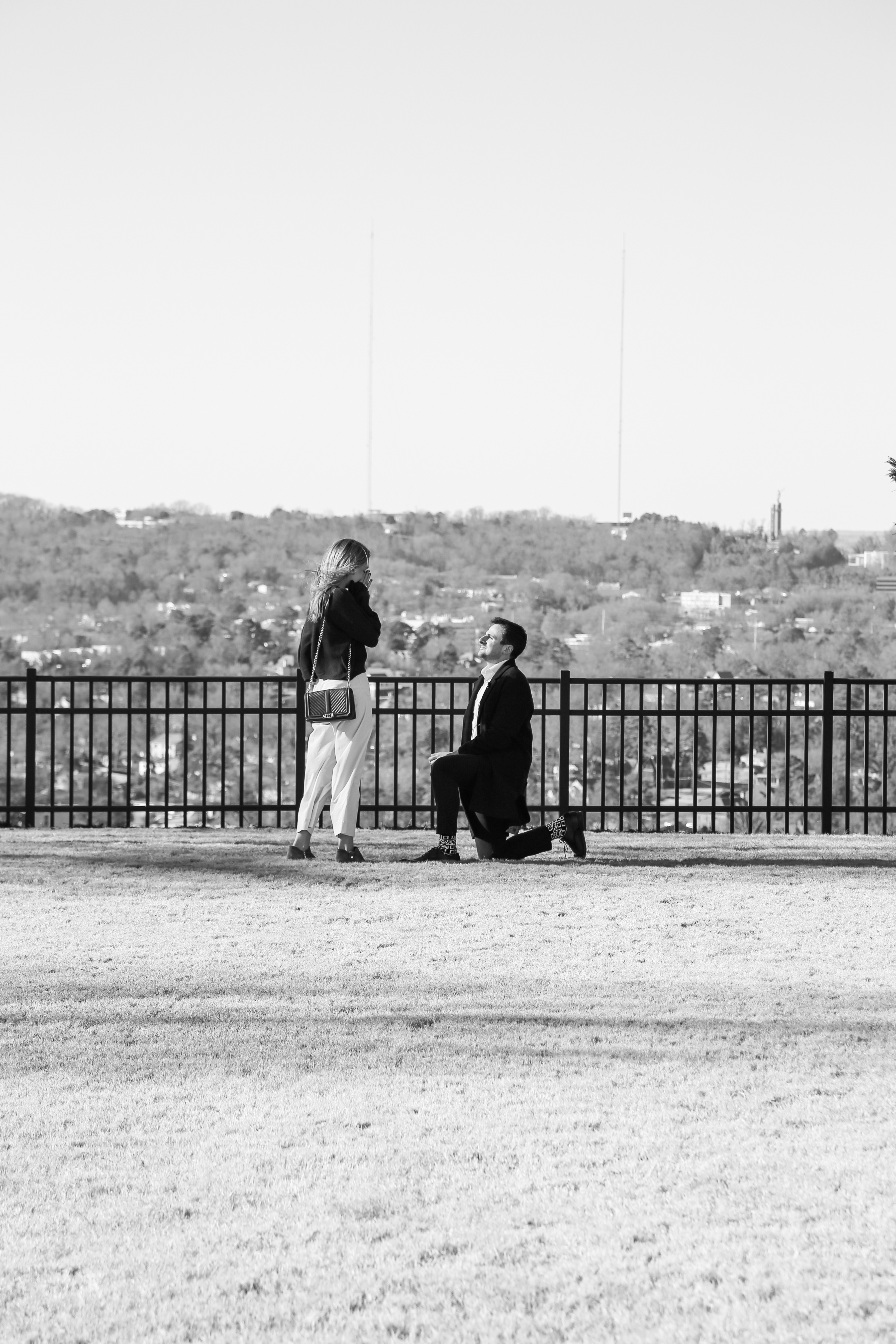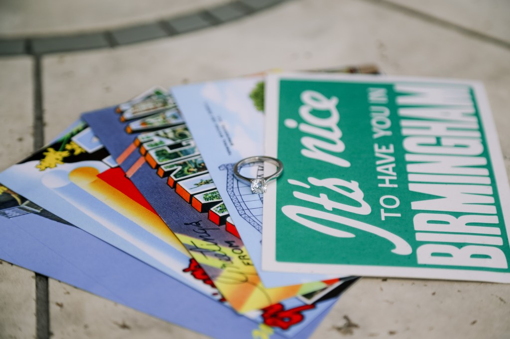He put so much thought into their engagement and organized a postcard scavenger hunt for his soon-to-be bride. She went all over the city visiting sentimental places from their dating relationship, with family and friends at each stop to give her the next clue. The whole thing ended at this beautiful overlook, where Nick got down on one knee and asked Elizabeth to marry him.
